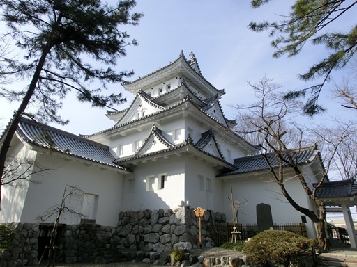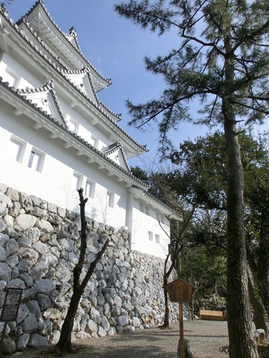 In the Edo Age, there was no gate in this location. The only way to enter the main Bailey was through the second bailey on the south side. The west gate was built in 1985. In the main bailey, I went to see the main castle tower. It was rebuilt in 1959 on top of the original stone wall foundations, with the same appearance as in the Edo Age. |