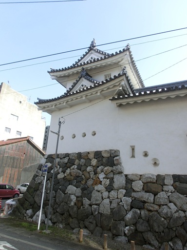 Ohgaki Castle is located in the south-western part of, present-day, Gifu Prefecture. Ohgaki Castle was originally built by Ohgaki Clan, who were the local feudal domain in the area, in the middle of the fifteenth century. TOYOTOMI Hideyoshi (1537 - 1598) , who became the ruler of Japan in 1585, ordered HITOTSUYANAGI Naosuke (1553 - 1590) to build Ohgaki Castle. It is said that the main castle tower of Ohgaki Castle was built in 1588.On the eve of the Battle of Sekigahara, the Western Army led by ISHIDA Mitsunari (1560 - 1600) used Ohgaki Castle as their headquarters. However, when the Eastern Army bypassed Ogaki Castle and headed for Sekigahara, the Western Army also left the castle and headed for Sekigahara, the site of the decisive battle.Please refer the page of "Sekigahara Battlefield": http://cf916626.cloudfree.jp/HandE_Japan/TravelDestinations/Chubu/Sekigahara_E.html At the beginning of the Edo Age (1603 - 1868) , ISHIKAWA Yasumichi (1554 - 1607) and MATSUDAIRA Tadayoshi (1582 - 1624) , who were the key retainers of TOKUGAWA Ieyasu, who led the Eastern Army and won the Battle of Sekigahara, became the castle lord of Ohgaki Castle. In 1635, TODA Ujikane (1576 - 1655) transferred to the Ohgaki Feudal Domain as the castle lord of Ohgaki Castle. The TODA Clan continued to rule the domain until the Edo Age was ended in 1868.I headed straight south from Ogaki Station, crossed the Mizumon River, which was once the remains of a moat. I arrived at the east gate of Ogaki Castle.