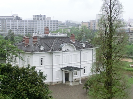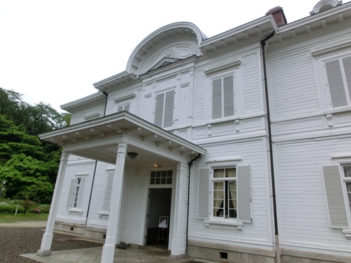 It's said to be in the French Renaissance style, and the white building is very beautiful. The entrance of "Jinpukaku Hall" is elegant.
