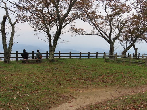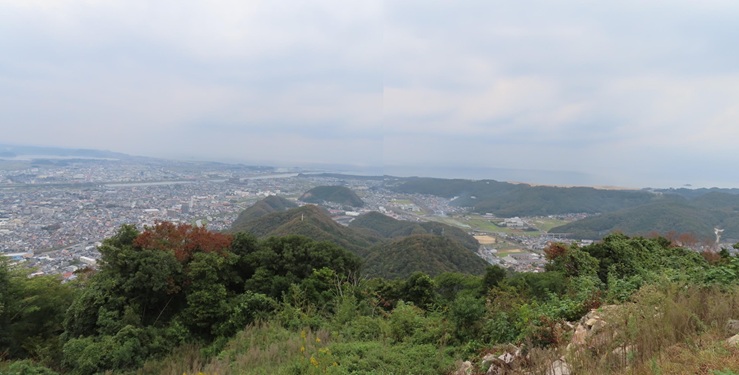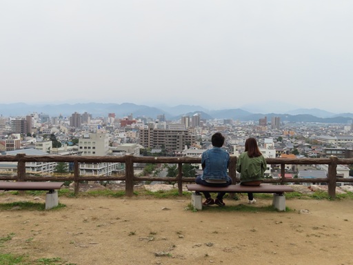 There are benches in the main bailey of the top of Mt. Hisamatsu. From here, you can see the entire city of Tottori. It is a truly magnificent view. |