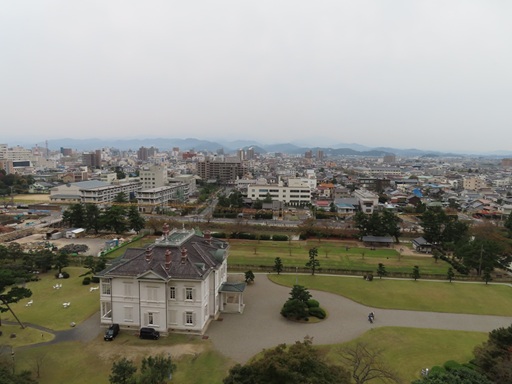 From the turret base, you can see a panoramic view of Downtown Tottori. "Jinpukaku" is visible below.