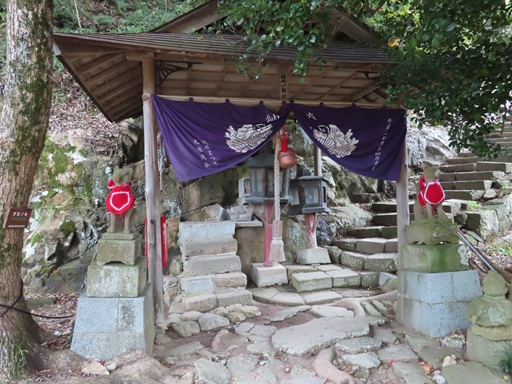 This spherical stonework is very unique. Tottori Castle was the only example in Japan. The spherical stonework was built around 1807 with the purpose of repairing the stone walls that were on the verge of collapsing. After visiting the "Yamashita-no-maru" Area, I headed to the "Yamagami-no-maru" on the top of Mt. Hisamatsu. You can reach "Yamagami-no-maru" from beside Nakasaka Inari Shrine on the north side of the second bailey. The family crest on the shrine's curtain is the "Inshu butterfly" crest of the IKEDA Clan of the Tottori Domain.