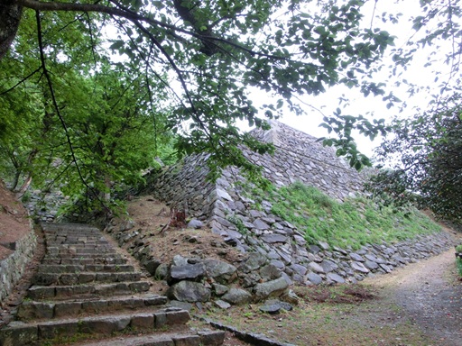 To reach the "Yamagami-no-maru" of Tottori Castle, you climb a relative height of about 200 meters. I encountered several people along the way. After about thirty minutes of climbing from "Yamashita-no-maru", the stone walls of the main bailey at "Yamagami-no-maru" came into view.