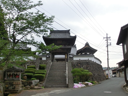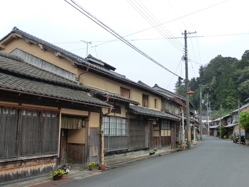The bell tower gate of Jissoji Temple, located at the top of stone steps, was impressive. Old houses line the road leading north from Jissoji Temple. This road is called "Chirimen Kaido", the road of crepe. Before the Kayo Railway opened, "Tango Chirimen", silk crepe produced in Tango Area, was likely transported along the road to Kyoto.