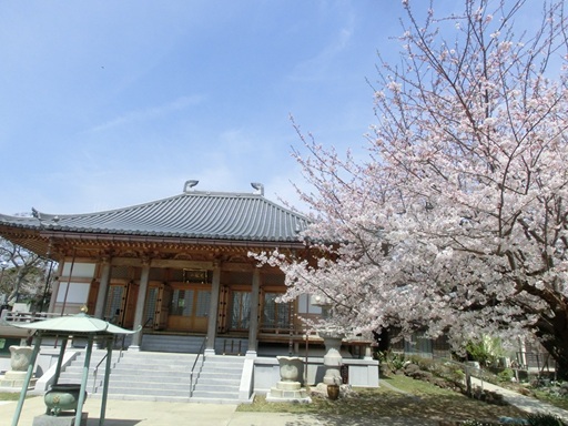 The cherry blossoms in front of the main hall were in full bloom. In the temple area, the Bentendo hall, built by WADA Yoshimori, is located.