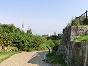 城址公園の東側には下り坂の散策路がU字を描いています。