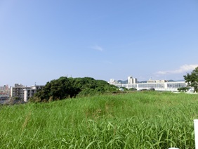 この空き地からは、名島城址の北側の切岸が良く見えていました。