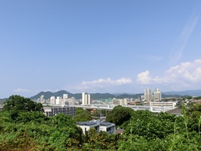名島城は博多湾に面した小高い丘の上に築かれていました。
