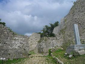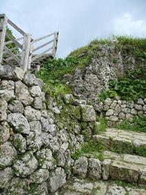 入場してすぐ左手の丘の中腹に、石垣が見えていました。