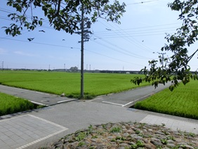 下の写真が、正念台の向こうに広がる田圃の様子です。