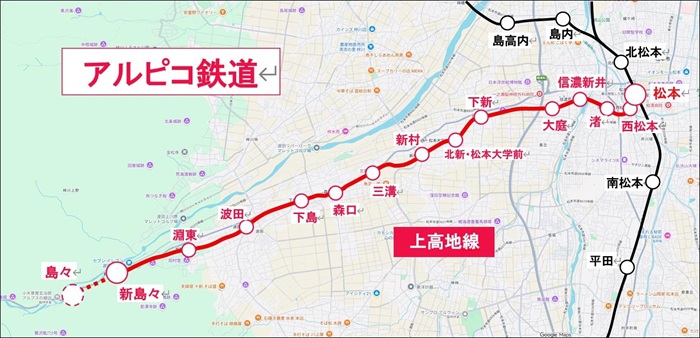 アルピコ交通上高地線は、松本から西に路線を伸ばし、