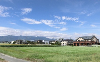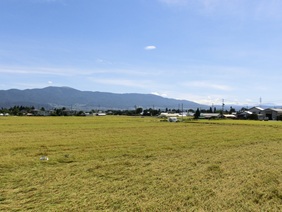 上の写真で見えている田圃は、河岸段丘の下に位置しています。