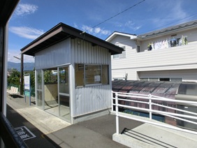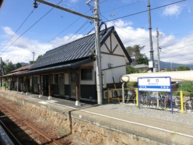 道を挟んだ駐車場の奥に、旧島々駅の駅舎もありました(上右写真)。