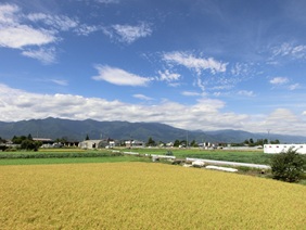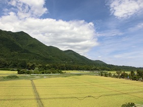田圃や蕎麦の畑が広がる中をのんびりと走ります。